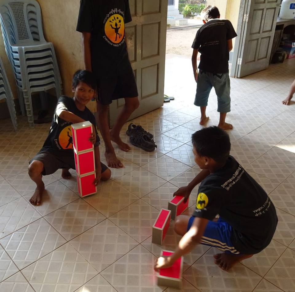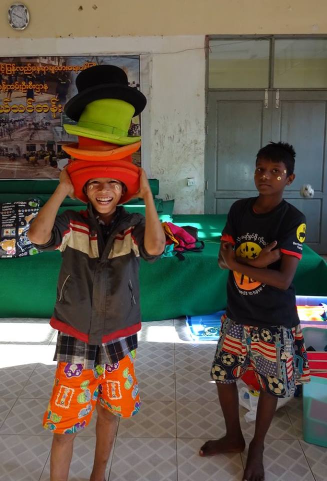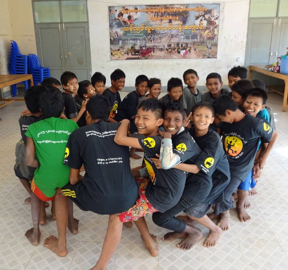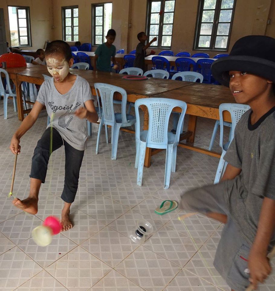 The Civil Society Initiative, a volunteer effort of the British Council Library, visits the centre regularly with a mobile library, reading stories and loaning books to the boys. CSI introduced us to the boys and U Kyaw Oo in 2014 and CSI volunteer Zin Zin is providing fine assistance to Jules as the translator for the Thanlyin workshops this season. CSI and the British Council are supporting the Day of Fun on February 13 when we’ll bring all the circus teams in Yangon together for workshops, rehearsals and presentations. We are very grateful for their support and encouragement for the social circus project. We’re really looking forward to seeing what the boys and other circus teams will get up to when they all get together.